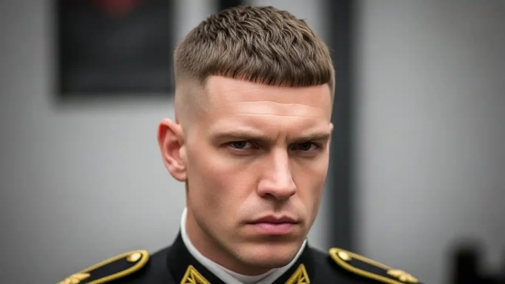 The military-inspired crop haircut emphasizes discipline and structure. With very short sides and a clean top, this haircut delivers a no-nonsense, confident look. It’s ideal for men who value simplicity and sharp grooming.