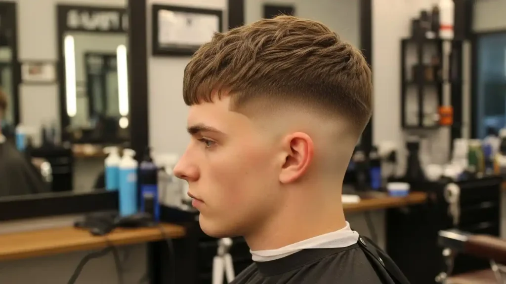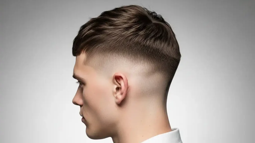 The crop haircut with a high fade delivers a bold and edgy appearance that instantly grabs attention. The fade starts higher on the sides, creating strong contrast between the cropped top and cleanly shaved areas. This style works well for men who want a sharp, modern haircut that highlights facial structure and adds definition.