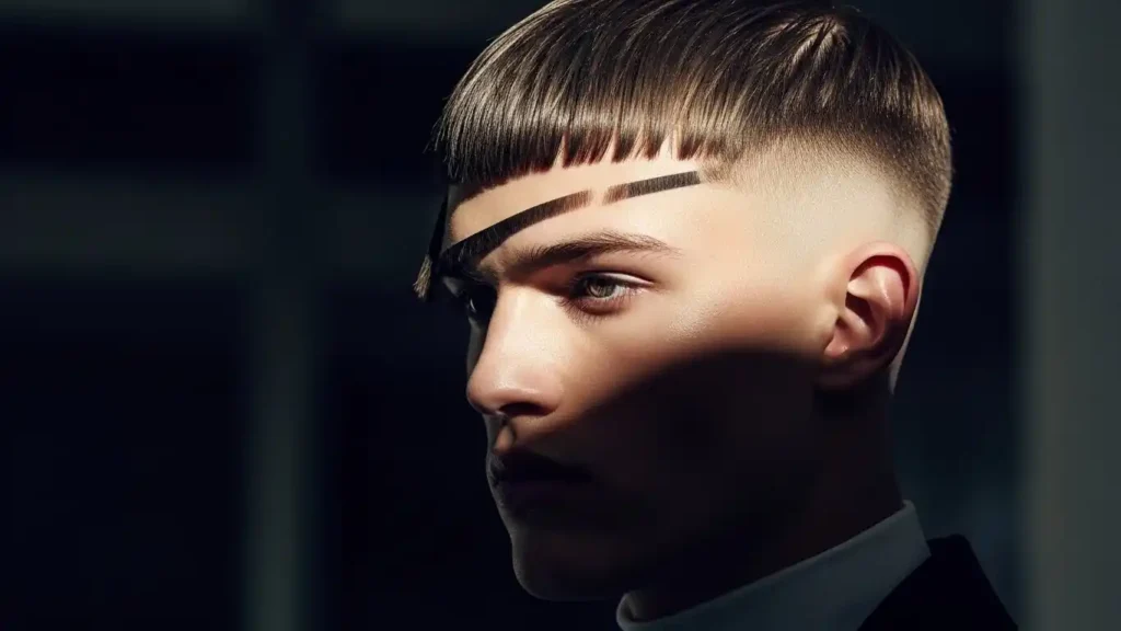 A crop haircut with an angular fringe adds a modern twist to traditional styles. The angled fringe creates visual interest and sharpens facial features. This haircut is ideal for men who want a unique yet wearable look.